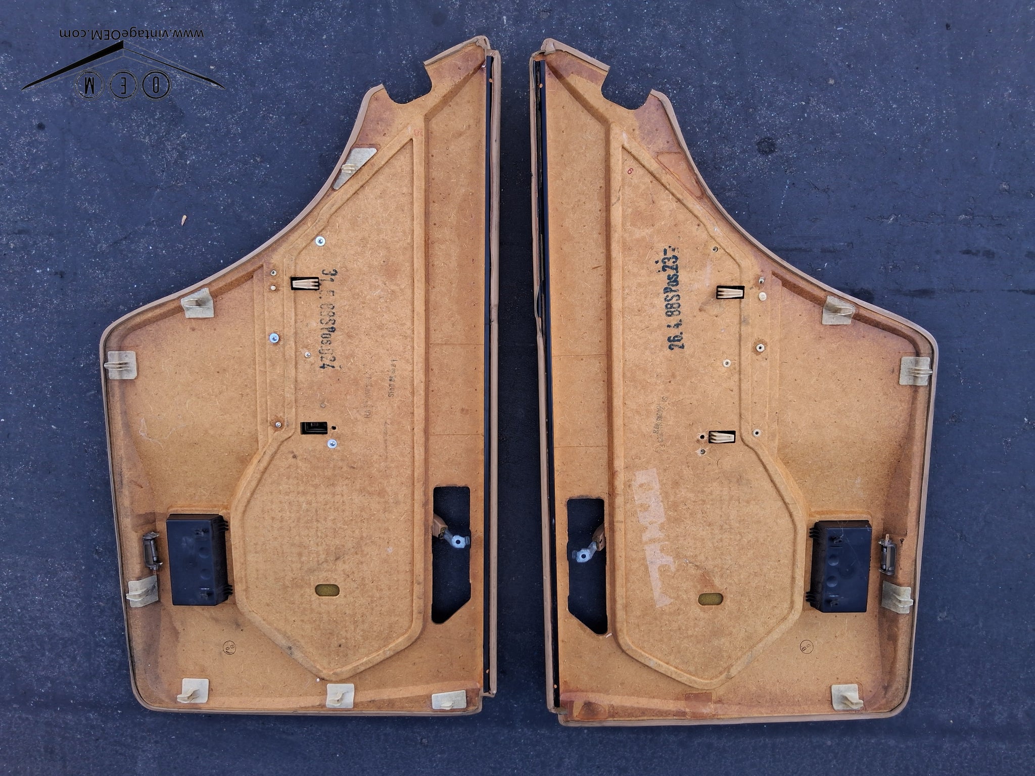 85-83 Mercedes Benz W124 rear door panels PALOMINO, pair